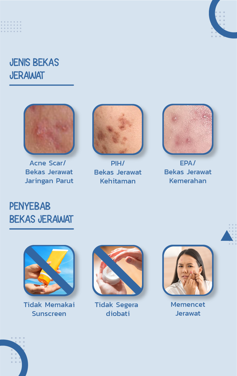 Ada 3 jenis permasalahan bekas jerawat, yaitu bekas